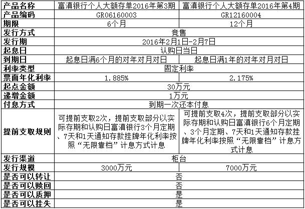 我行定于2016年2月 1日 至 2月 7日發(fā)行個(gè)人大額存單2016年第3期、第4期產(chǎn)品,產(chǎn)品具體信息如下: