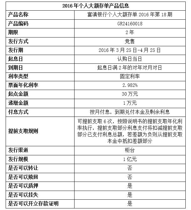 我行定于2016年3月25日至4月25日發(fā)行個人大額存單2016年第18期產(chǎn)品,產(chǎn)品具體信息如下: