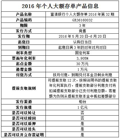 個人大額存單 2016年第32期產(chǎn)品發(fā)行公告