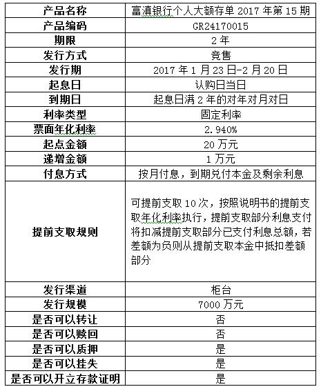 個(gè)人大額存單 2017年第15期產(chǎn)品發(fā)行公告