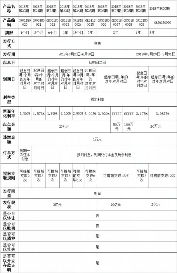 個人大額存單 2018年第20至30期產(chǎn)品發(fā)行公告