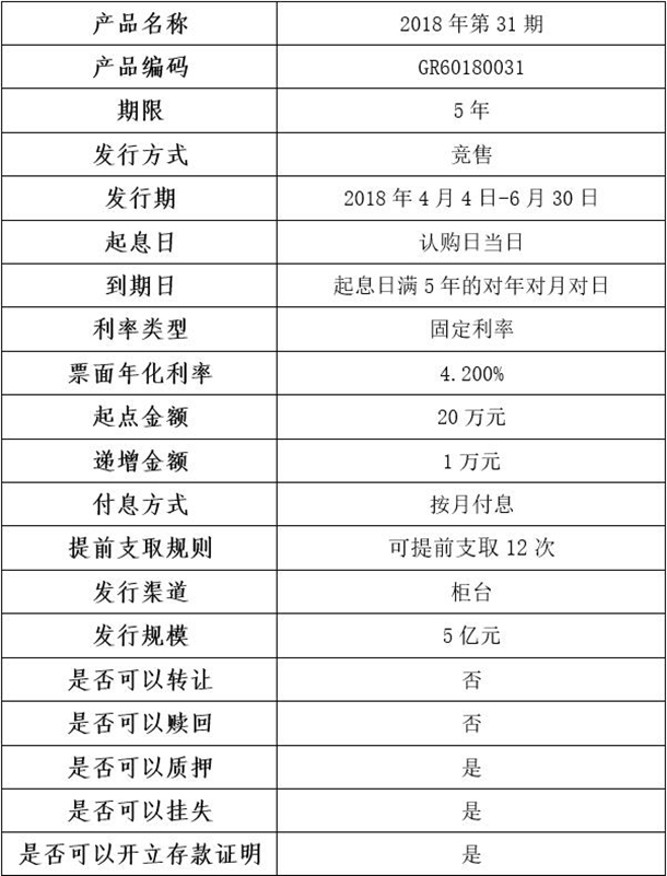 我行定于2018年4月4日發(fā)行個人大額存單2018年第31期產(chǎn)品,產(chǎn)品具體信息如下: