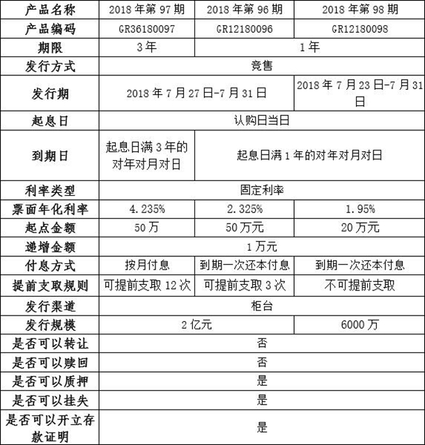 我行將發(fā)行個(gè)人大額存單2018年第96至98期產(chǎn)品,產(chǎn)品具體信息如下: