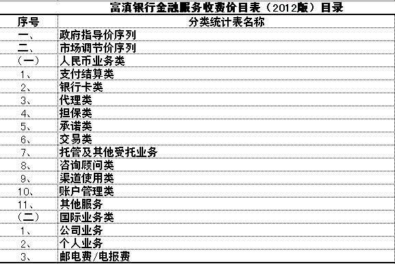 富滇銀行金融服務收費價目表(2012版)